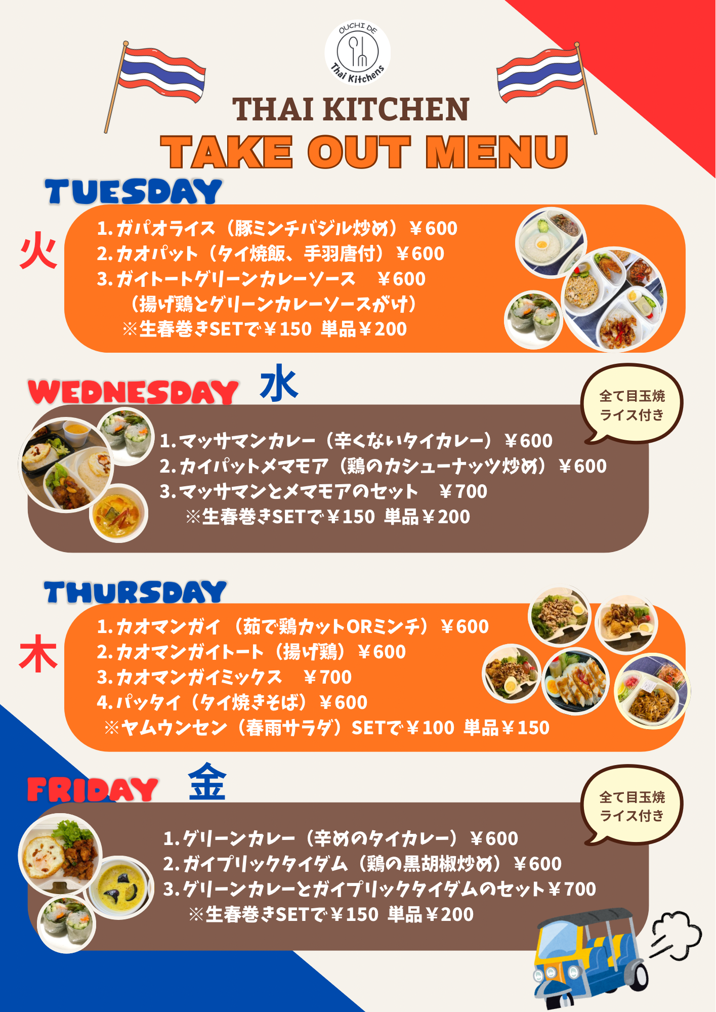 タイキッチンカオマンガイです🇹🇭 ・ 本日も空堀LIFE横にて、お弁当販売やってます. 木曜のメニュ